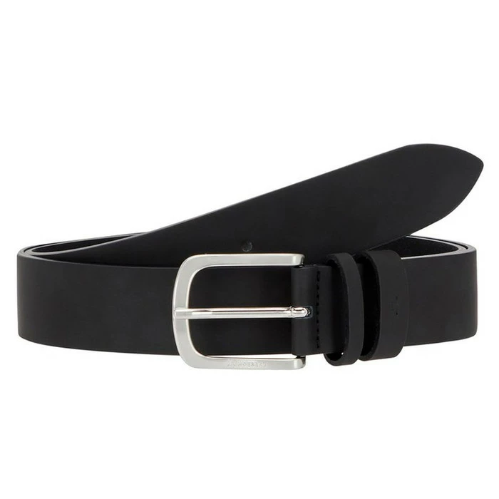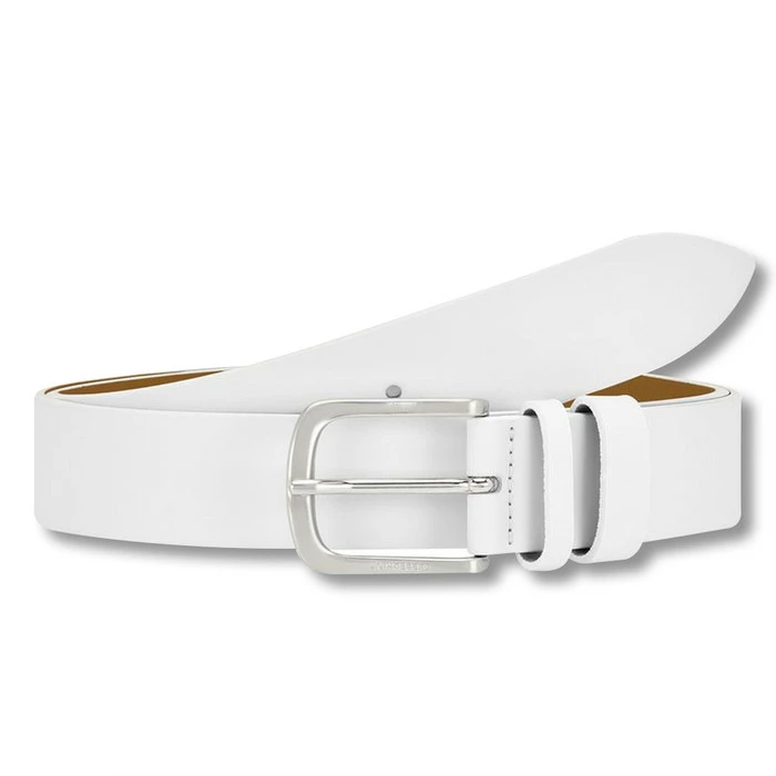 Leather belt with a debossed J.Lindeberg logo on buckle and silver matt buckle finish.